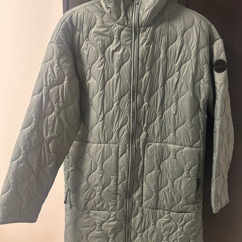 Täyte 90% untuvaa. Kuin kevytvanutakki, mutta lämpöisempi. Muutamalla käyttökerralla ollut, ei vikoja. Kiristysnyörit helmassa. Koko s ja vastaa kokoaan. Ovh 120e.