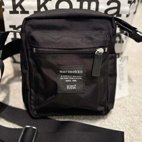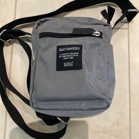 Marimekon harmaa/beige värinen olkalaukku, Cash & Carry.