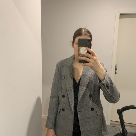 Musta bleiseri, hyvä käytetty kunto. Olkapäissä kevyet toppaukset, kiinnitys neppareilla.