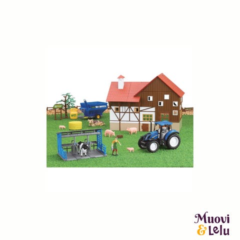Tämän lelusetin parissa hauskat maatilaleikit on taattu! Perheen pienimmät voivat ajaa traktorilla ympäri rataa kuljettaen perävaunussa söpöä lehmää.
