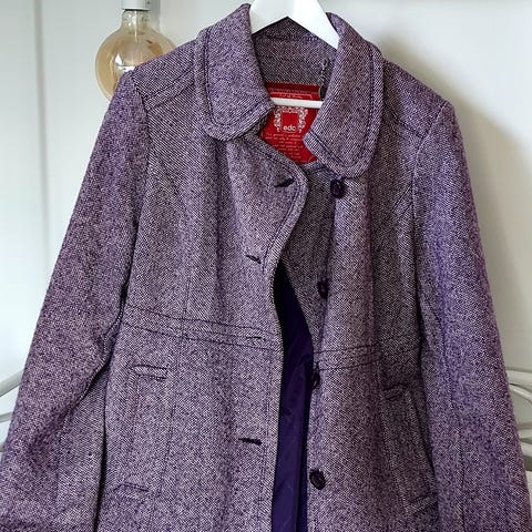 Nätti villakangastakki kokoa L. Kainalosta kainaloon n. 49 cm ja olkahelma n. 91 cm.