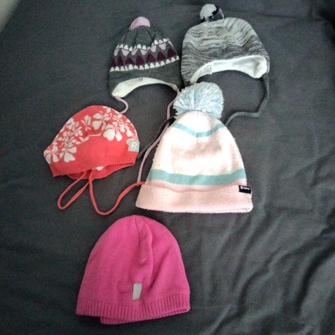 Reiman lämmin talvi pipo missä vuori ja vahvistetut korvien kohdat. Todella tykättiin kunnes kävi pieneksi. Ei pyöri päässä. Tähän kun laittaa kylmemmällä kypärämyssyn alle niin hyvin tarkenee