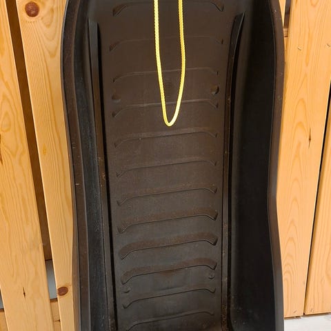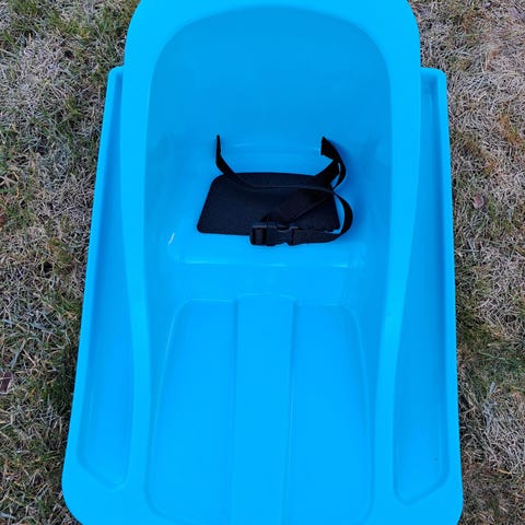 Vaaleanpunainen vauvan pulkka. Hyväkuntoinen
