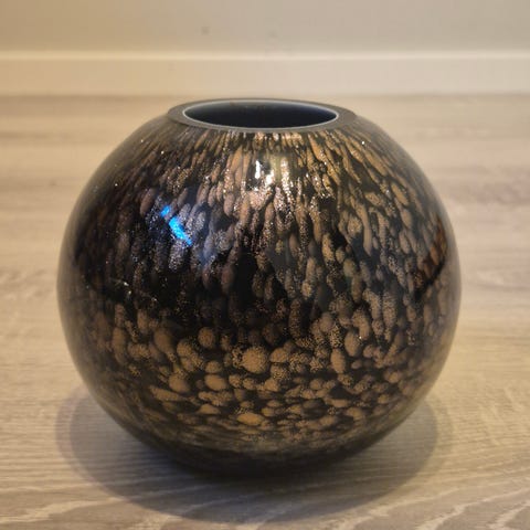 Upea maljakko, jossa 24 karaatin kullatut metallikoristeet. 24 cm korkea.