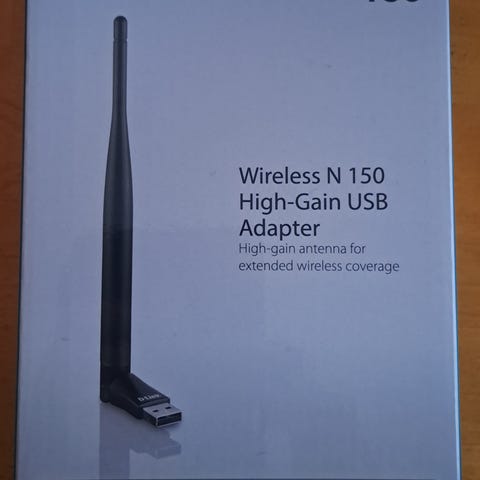 D-Link DWA- 140 N USBA adapter, Wireless N, 300 Mbps 2.4 GHz. Lisänä noin metrin pituinen USBA-USBA kaapeli, jos tarvetta