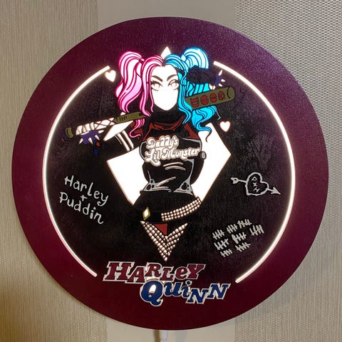 Halkaisija noin 290mm, paksuus 30mm. Sisällä led-nauha, johdossa katkaisija. Takana seinäkoukku. Lahjapakkauksessa.