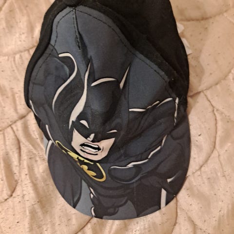 Myydään H&M:n musta lippis, jossa vain vähän kulunut kultainen Batman-logo otsalla, väri edelleen selkeä musta, ei tahroja tms. Lasten lippalakki, kokolappu 134/152, muokattava ympärysmitta. Hajusteeton ja eläimetön talous. Maksu käteisellä tai MobilePay. Vain nouto.