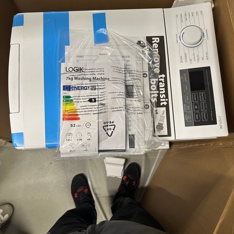Mukana toimitetaan ohjekirja, erillinen tulovesiletku ja poistovesiletku (kiinteä). Muista poistaa kuljetuspultit pesukoneen takaa ennen käyttöönottoa.