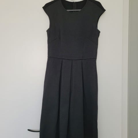 Siisti pikkumusta mekko koolle 42/44. Materiaali polyesteri 95%, elastaani 5% Mittoja kainalo- kainalo 2x47 cm, olka- helma 92 cm.