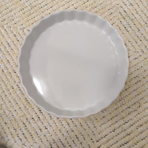 Ehjä piirakkavuoka, jossa omenapiirakan ohje. Halkaisija 29cm. Hinta 8e.