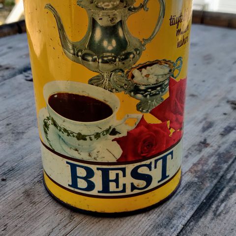 Kaunis purkki 3 eri kuvalla, purkki ihan hyvä kuntoinen, kansi toimii mutta kellastunut hieman koska muutenkin jo ikää vintagea.
