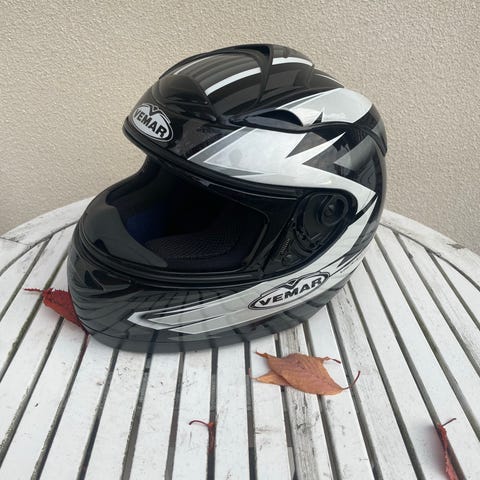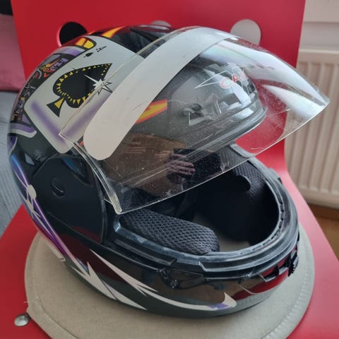 ECE-hyväksytty. Koko L (59-60). Ei kaaduttu mutta joitakin käytön jälkiä löytyy.