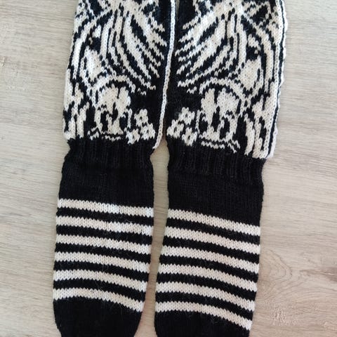 Kapealle tytön jalalle villasukat ohuesta langasta (lankava sulo). Menee omaan jalkaan, mutta on nilkasta liian kapeat. Postituskulut päälle 5e.