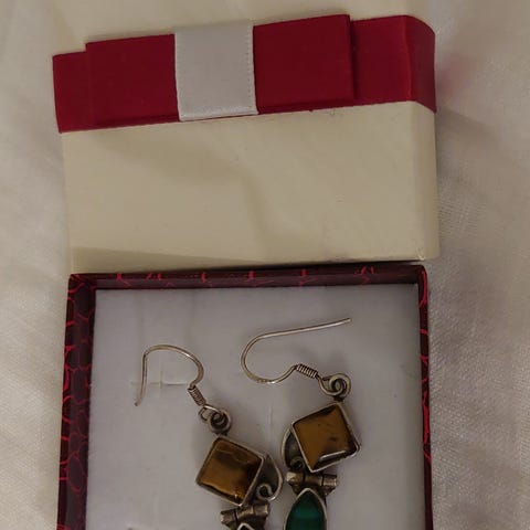 Mattahopeiset korvikset (kork. 1,2 cm) sekä riipus (kork. 2,3 cm) Ilman ketjua.