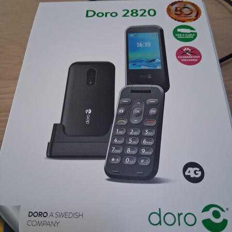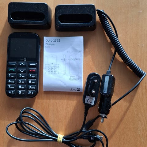Toimiva Doro 1362 senioripuhelin + laturi ja pöytäteline