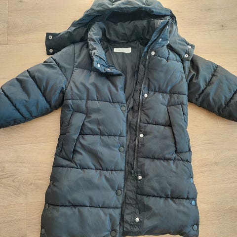 HULABALU sininen toppatakki karvakauluksella, huppu irrotettavissa vetskarilla.