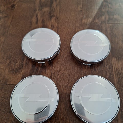 Alkuperäiset Opelin harmaat vanteen keskikupit. Halkaisija 53,5 mm, vanteen sisään menevän osan halkaisija noin 45 mm