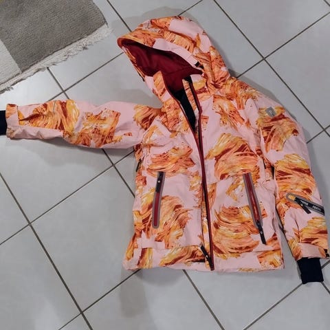 Reima Tec ominaisuuksilla laskettelutakki / lautailutakki koko 150 cm, väri luonnonvalkoinen. Helmassa lumilukko ja kiristysmyöri. Isot taskut tarralla ja vetoketjulla. Kainaloissa tuuletusaukot vetoketjulla. Povitasku vetoketjulla. Huppu nepparillinen, irroitettavissa. Hihansuissa peukkuaukolliset resorit. Hihassa vetskaritasku laskettelukortille. Paljon teknisiä ominaisuuksia. Ehjä ja yleisilmeeltään siistissä käytetyssä kunnossa. Tummentumaa hihansuissa ja hatlua tahraa saattaa olla.