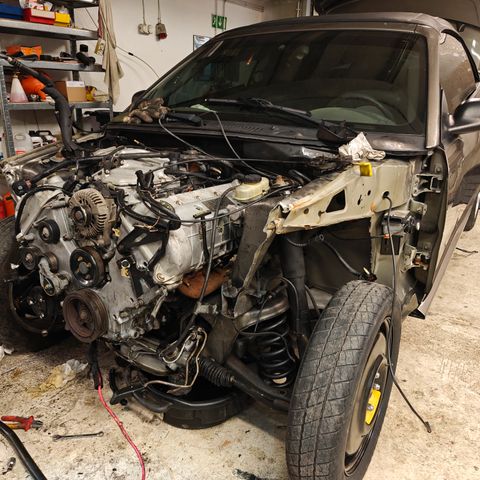 Moottorin puolelle löytyy mm. molemmat puolapaketit, venttiilikopat, egr venttiili, bensapaineensäädin ja vakio valurautapakosarjat. Löytyy myös jäähdyttimen tuuletin ja jäähdytin. Myös itse moottori myynnissä erillisessä ilmoituksessa.