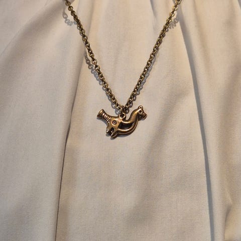 Vähän tummunut yksinkertainen pronssinen nilkkaketju. Mahtuu moneen nilkkaan, koska yksi lenkki on hieman isompi, eli lukon voi kiinnittää siihen. Ranteeseen on liian iso.