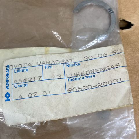 Myydään Toyotan uusi ja alkuperäinen osa, osanumero 90520-36005 (RING,