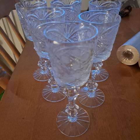 Kristallilasit jalka kirkas. Nämä lasit ovat valmistettu kirkkaasta kristallista ja niissä on koristeellinen leikkauskuvio. Sopivat erinomaisesti juhlatilaisuuksiin tai elegantiksi lisäykseksi kattaukseen.