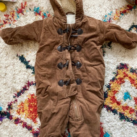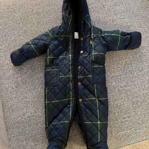 Laivastonsininen, ohut, tikkikankainen välikausihaalari (MarMar Copenhagen), kokomerkintä 6–8 M. Resoreissa nyppyä, muutoin hyväkuntoinen haalari.