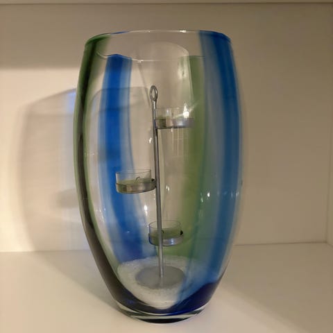 Mäntsälän lasitehtaan kolme kirkas lasista maljakkoa/tuikkualustaa