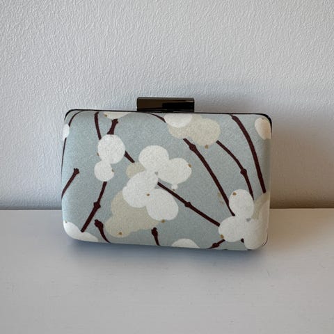 Ihana pieni iltalaukku. Todella hyvässä kunnossa, kuten kuvista näkee. Päällinen puuvillakangasta, kotelo on todella kova ja reunat ainakin metallia, ei vääntymiä yms.