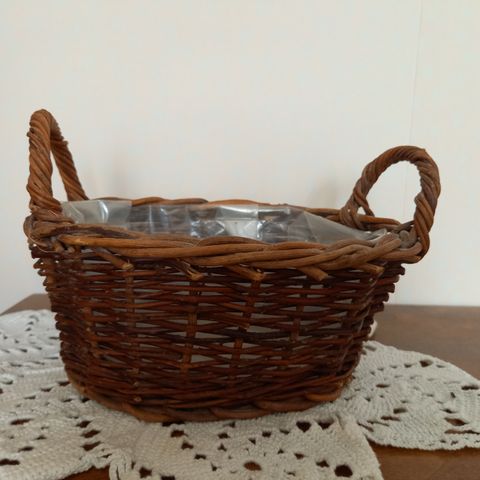Myyn kuvanmukaisen pienen juurikorin. Pituus noin 28cm ja leveys keskeltä noin 22cm. On isoäidin vanha, jostain 1950 luvulta. Hieman on tullut käytönjälkiä mutta on kiva vaikka koristeeksi. Hinnan lisäksi postikulut tai nouto Ruoveden keskustasta.