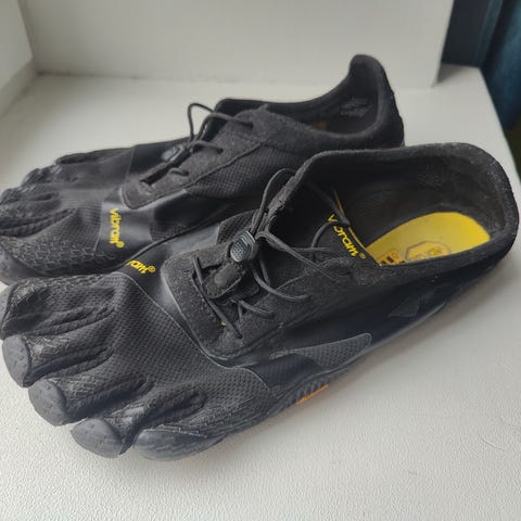 Muutamasti jalassa käyneet Vibram-pohjaiset Five Fingers V-Soulit, koko 39. Nämä loppuunmyydyt! En huomannut vikoja.