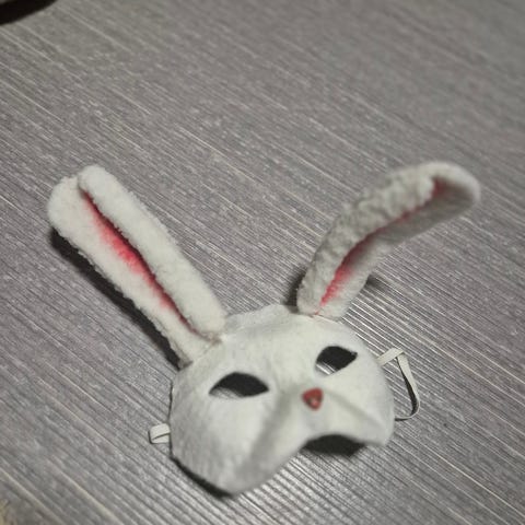 Juuri tehty käyttämätön maski, vuorattu sisältä, silmät on lakattu maalauksen jälkeen.
