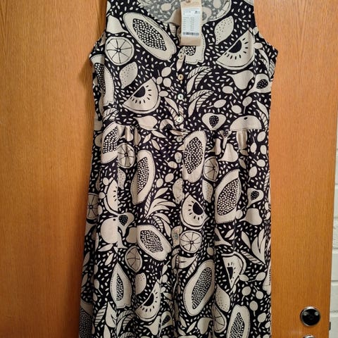 Musta puuvillainen Rigmor mekko. UUSI. Koko M. Yksi tasku edessä ja halkiot sivuilla. Kk 57 cm ja olka-helma 100 cm.