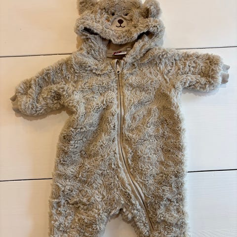 Söpö ja pehmeä nallehaalari oloasuksi tai esim. vaunuihin lisäkerrokseksi. Pesty hajusteettomalla aineella. Ei tuoksuja, tahroja tai karvoja.