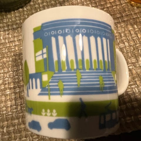 Myydään käyttämätön muki Arabia, Eduskunta design Niina Aalto , näitä tehty vain 500 kpl 2011 , valmistettu Suomessa , tämä on sininen , tyyppi Arabian Teema , korkeus 8cm, leveys 8cm