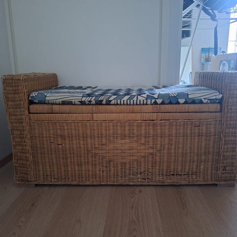 Myydään kuvan mukainen pienen sohvan tai ison nojatuolin päällinen. Kuvassa oleva sohva penkki ei lähtökohtaisesti sovi ylle päälliselle vaan päällinen laitettu kuvaa varten. Istuinosa leveys n. 100 cm.