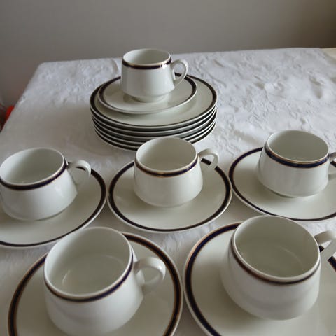 Arabia Säde kahvikupit asetit ja leivoslautaset... piippuleima.