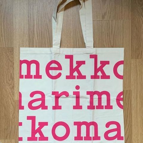 Marimekko logokassi, vaaleanpunaiset kirjaimet