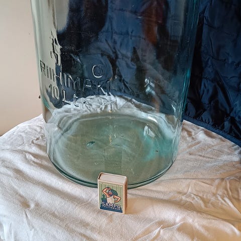 Riihimäen lasin vanha hieman vihertävä upea 4l narutölkki.