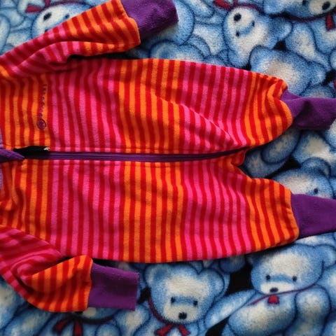 Tutan fleecehaalari koko 56 cm,unisex.Haalarissa on jonkin verran nyppyjä ulkopinnalla ja sisäpuolelta on nukkaantunut kokonaan.