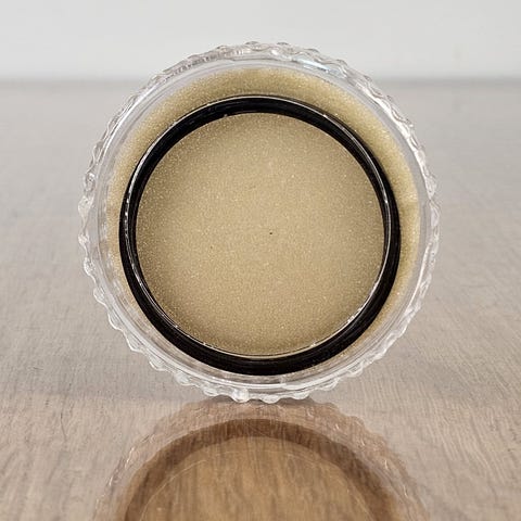 Naarmuton ja ehjä, muuta en osaa sanoa kun perintönä saatu, eikä ollut itsellä käytössä. Ei sisällä adapterirengasta.
