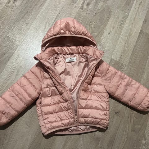 Exit lasten kevyttoppatakki, koko 104. Takissa irrotettava tekoturkiskarva.Edessä taskut.
