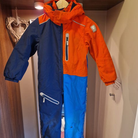 Reimatec talvihaalari koko 116, hyvässä käytetyssä kunnossa, polvissa kulumaa mutta ehjät, peppu osa hyvässä kunnossa, jalkalenksut ehjät, viimeisessä kuvassa näkyy hieman puremajälkeä.