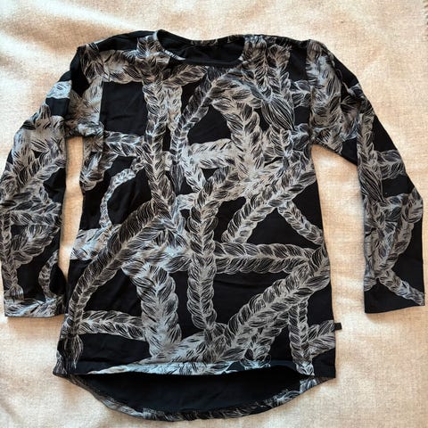 Raikkaan kirjava Vimma-malliston poikien paitapusero. Koko 130. Kolme nappia puuttuu.
