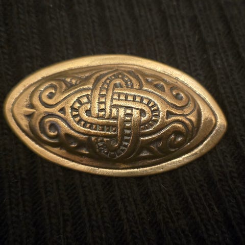 Kalevalakorun Orman solmu, pronssinen rintaneula.