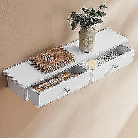 Kahden käytännöllisen laatikon ansiosta voit säilyttää pienet tavarat siististi. Lisäksi voit asettaa kelluvalle hyllylle kauniita koriste-esineitä, jotka tuovat kotiisi ripauksen eleganssia.