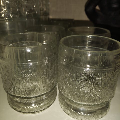 Riihimäen Lasin nyppyläpintainen juomalasi, malli 5054, 1930-luku.