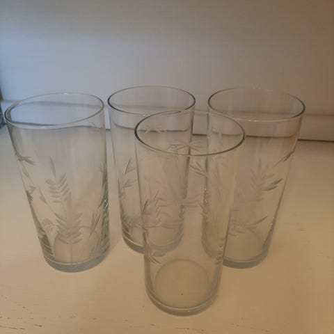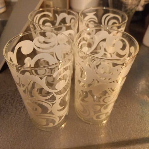 7kpl vintage juomalaseja. Yksi vihreä lasi myös mukaan, joka ei näy kuvassa.
