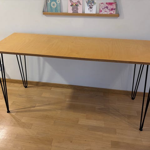 Martela (ehkä Alku-mallisto, ovh jotain 450 €, en muista enää) hyväkuntoinen ja vähän käytetty jykevä pöytä toimistoon tai muuhunkin käyttöön. Jalat kierteillä korkeussäädettävät. Väri taitaa olla kirsikka, yritetty kuvata oikea sävy. Hyvä apupöytä esim jouluksi keittiöön.