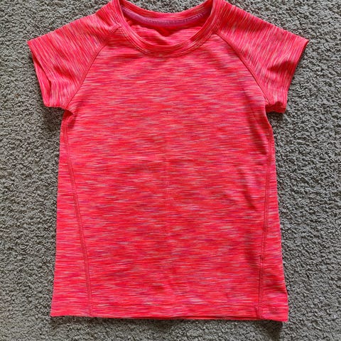 Värikäs T-paita urheiluun. Koko 122-128. Selässä meshiä tms verkkomateriaalia.